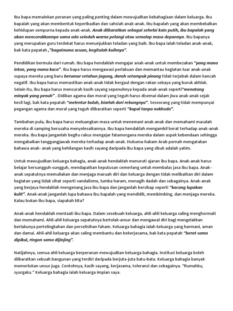 Ibu bapa menjalankan tanggungjawab sebagai pemimpin keluarga. PUNCA HUBUNGAN KELUARGA SEMAKIN RENGGANG Institusi keluarga merupakan aset utama kepada pembentukan. Contoh Karangan yang cemerlang.